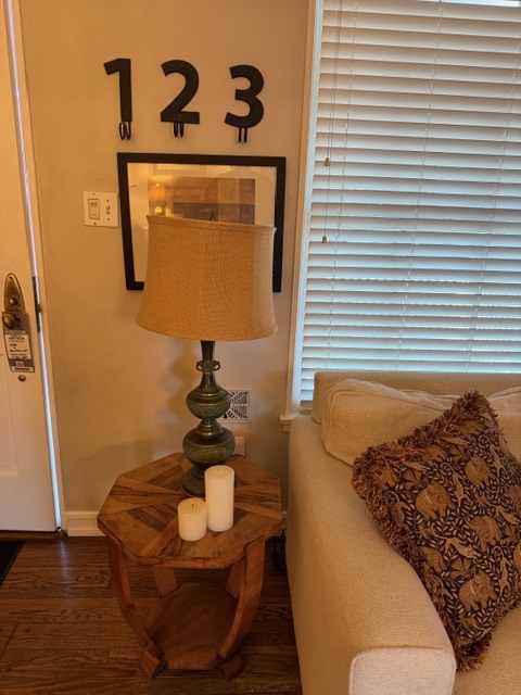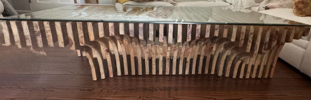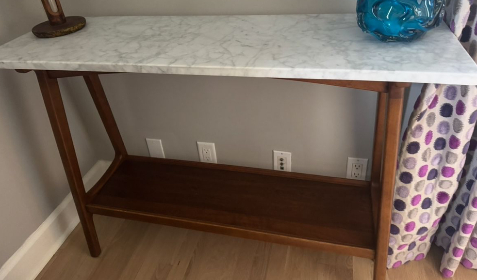- Wood + marble console table