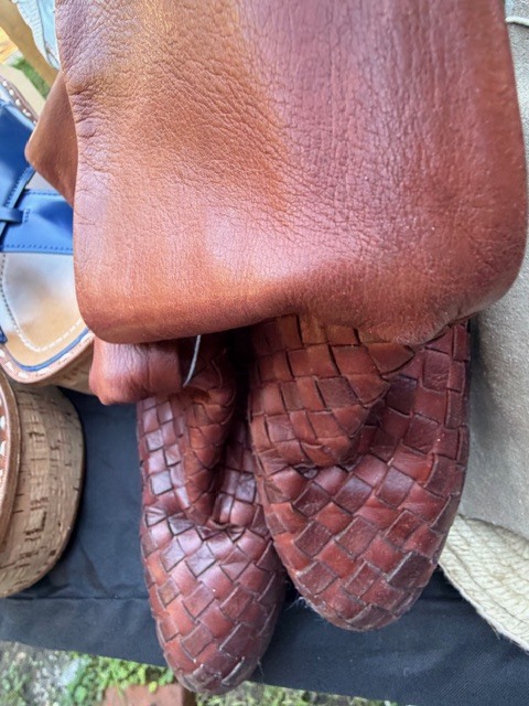 - Leather + wood woven chairs