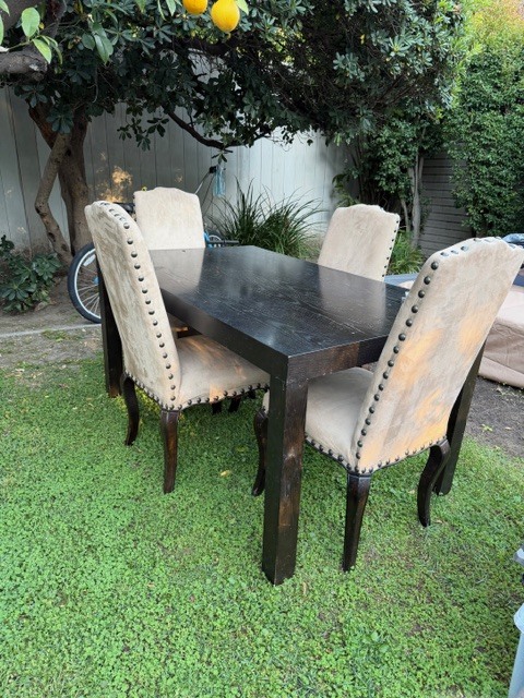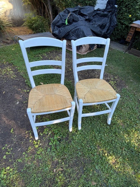 - Restoration Hardware metal + cushioned slingback chairs