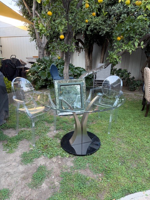 - Acrylic Kartell-style chairs