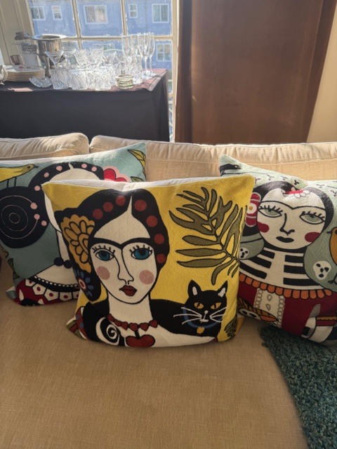 • 3 Friday and Cat embroidered pillows