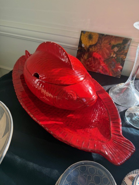 • Mid-century Sarreguemines ceramic serving fish and platter