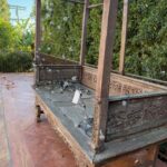 - Hand painted distressed wood bench with porcelain inlay
